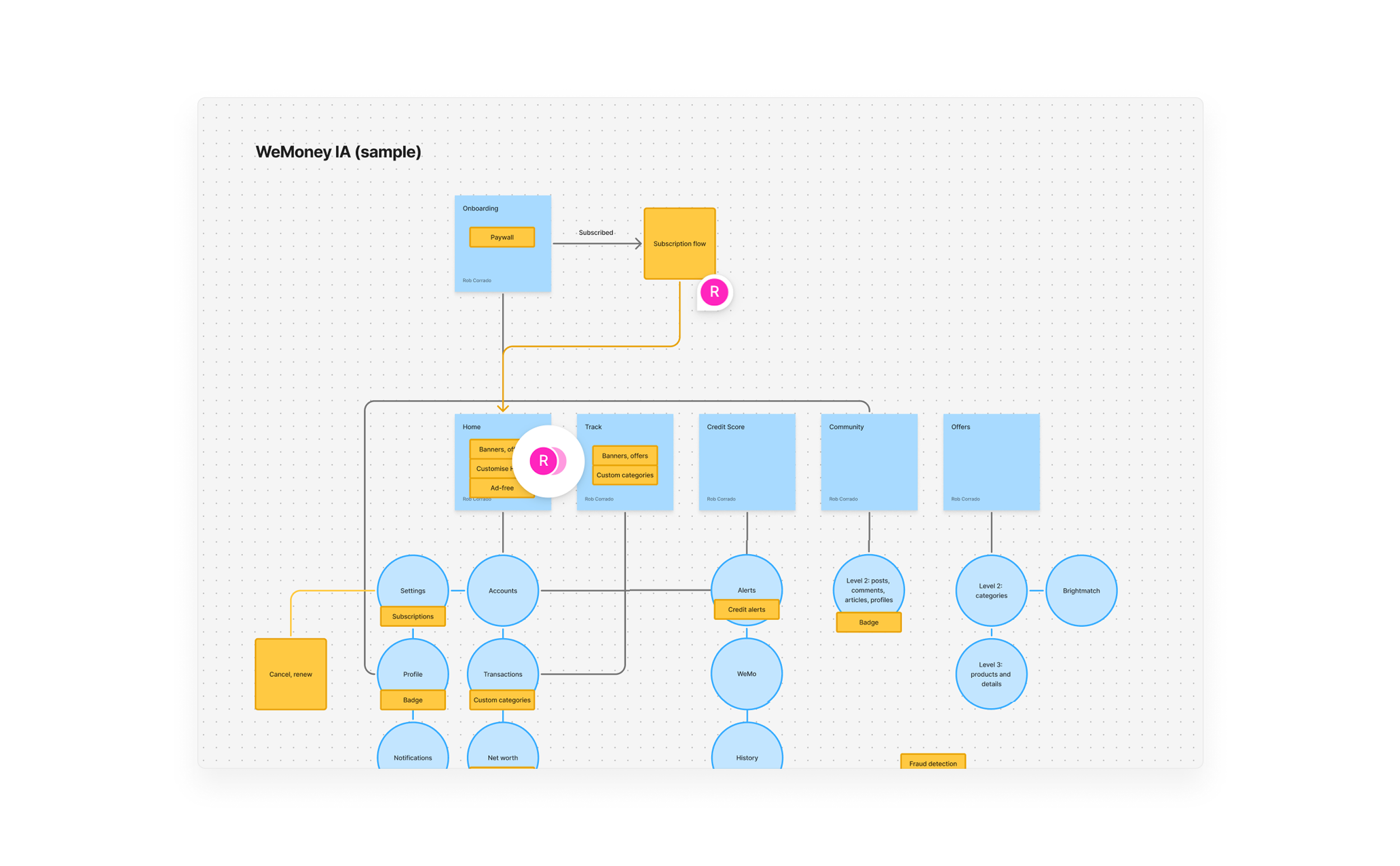 Mapping WeMoney’s IA helped me understand where entry points into the Pro experience could be and how everything linked together.