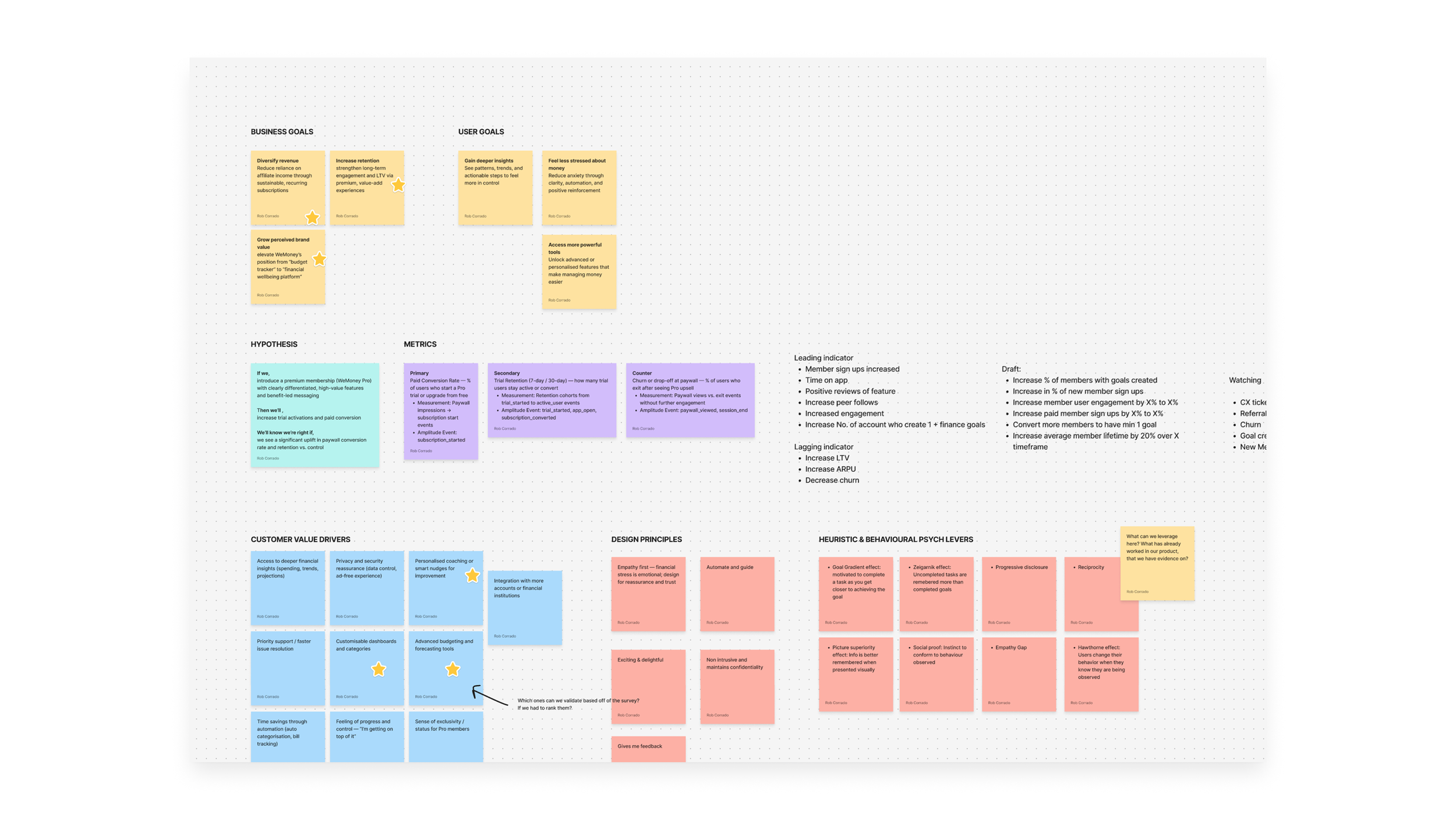 One of my discovery files—this helps me organise project goals, metrics, amplitude events, user value drivers & more. Things to keep in mind throughout the design process.